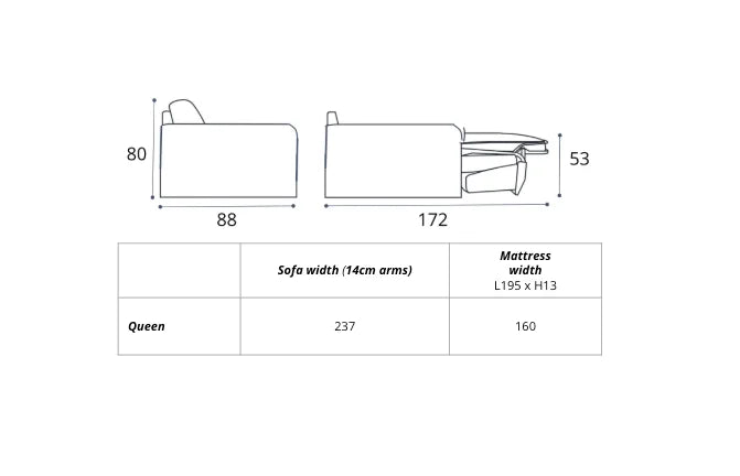 The horizontally opening Slumbersofa Horizon comes with a real deluxe 13cm thick memory foam mattress also from Italy, with antibacterial, anti mite hypoallergenic stretch fabric cover.