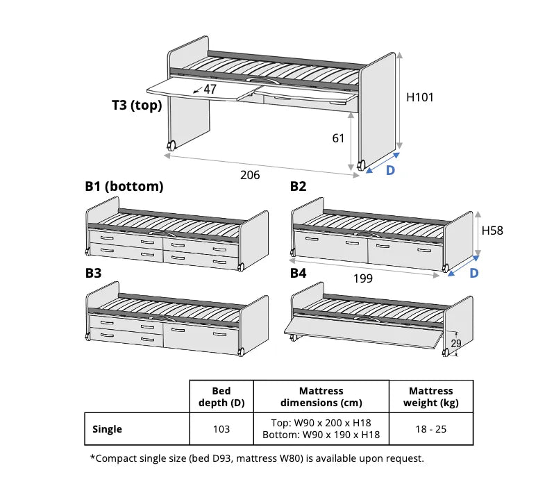 Unlike traditional bunk beds that are full adult height, Cascade makes a lower and safer option for younger children. It has a high degree of customisation options to fit your space requirements and needs.