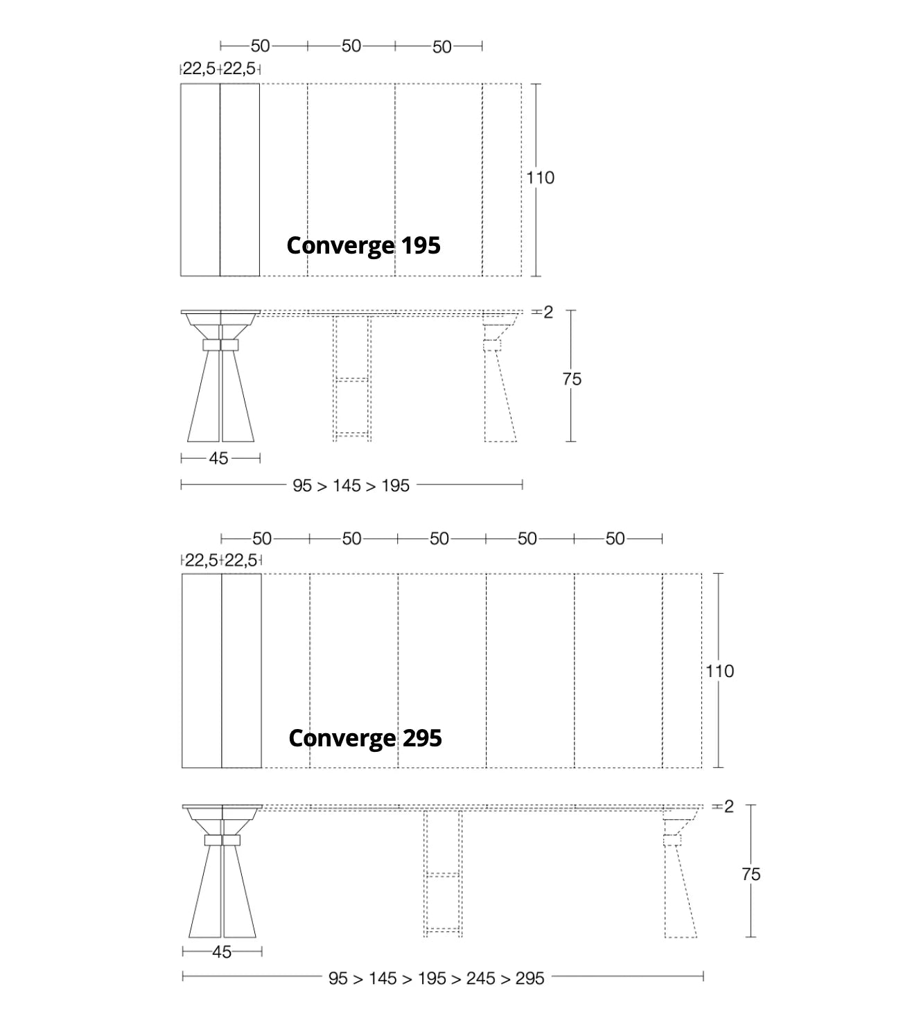Converge console/dining table is custom made in Italy for you. You can choose from the range of table top finishes for your beautiful dining area: