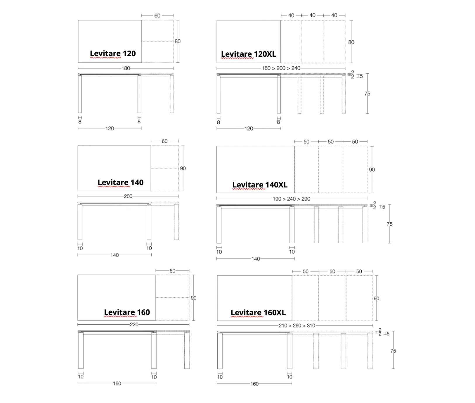 Levitare extendable dining table is custom made in Italy for you. You can choose from the range of table top finishes for your beautiful dining area: