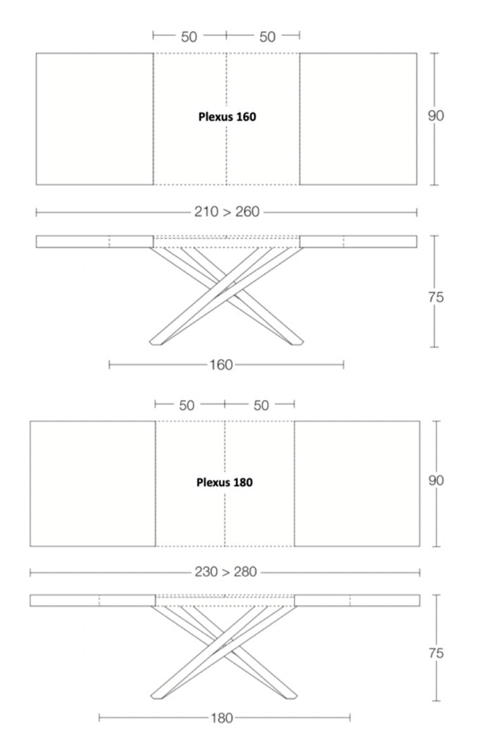 Plexus extendable dining table is available in 2 sizes:
