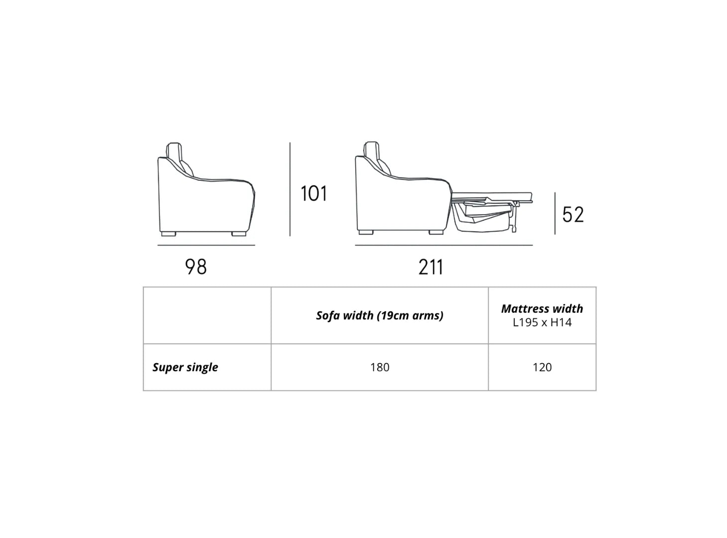 The Slumbersofa Apex comes with a real mattress also from Italy, with an antibacterial, anti-mite hypoallergenic stretch fabric cover, upgradable with options such as memory foam.