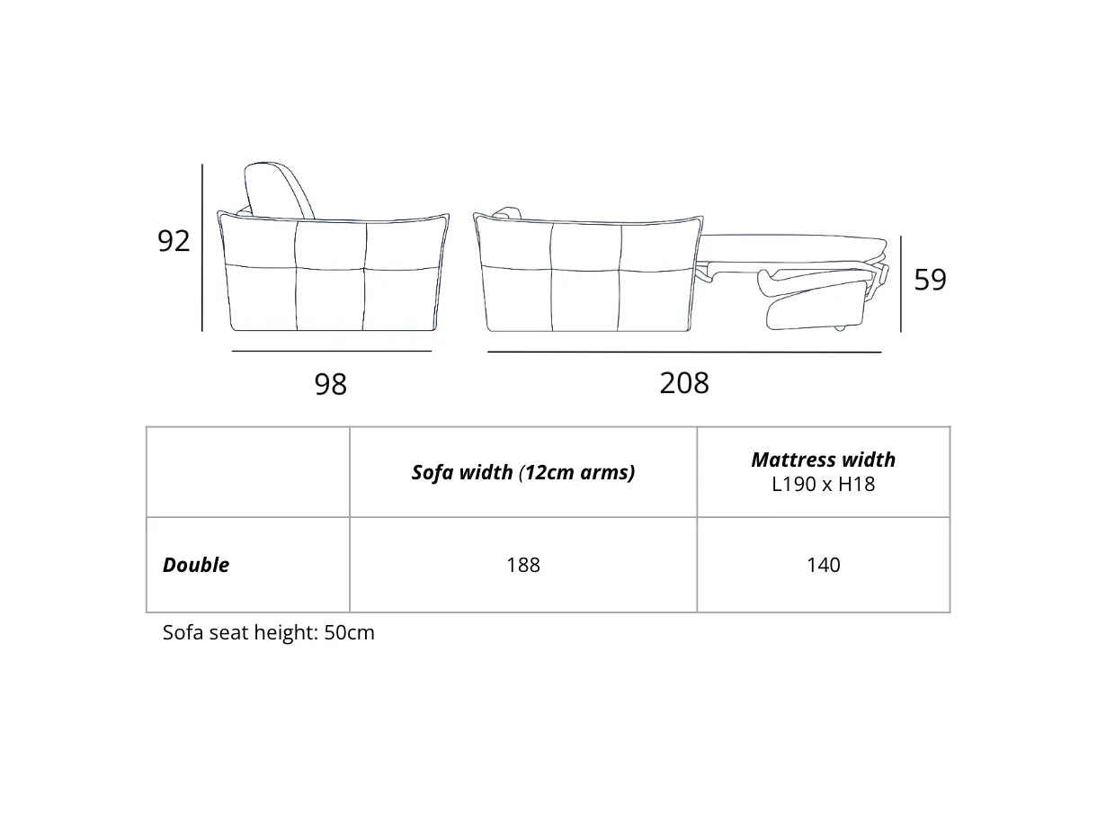 Slumbersofa Rex sofa bed is a double sized sofa bed with slender arms to fit into smaller spaces. Promotion Save $500 compared to equivalent regular priced sofa. Regular price is $4,388, promotional price is $3,888.