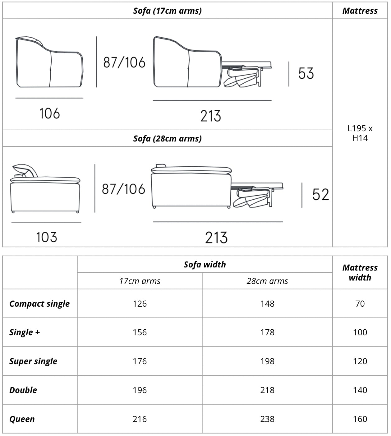 The Slumbersofa Highback comes with a superior 14cm thick mattress also from Italy, with hypoallergenic cotton stretch fabric cover which you can upgrade with options such as memory foam.