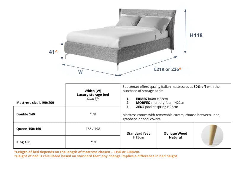 Upgrade to the dual lift system, and the mattress base can be lifted parallel to the bed base, as well as the 90 degree opening which makes it effortless to change mattress covers and easy access to the back of the storage area.