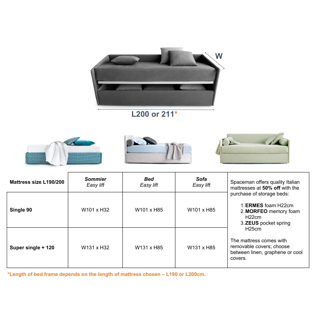 A versatile designer storage bed with Easy Lift in 3 different configurations. Available in single or super single size.