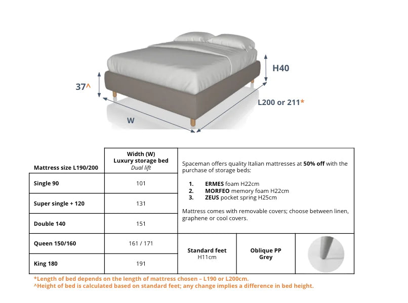Spaceman offers a range of luxury Italian mattresses with 50% off when purchased with a Spaceman bed.
