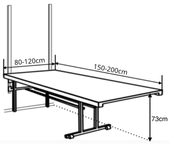 Note this table is ideal for a flat wall without a skirting board. If with a skirting board, preparatory work will be required prior to installation.