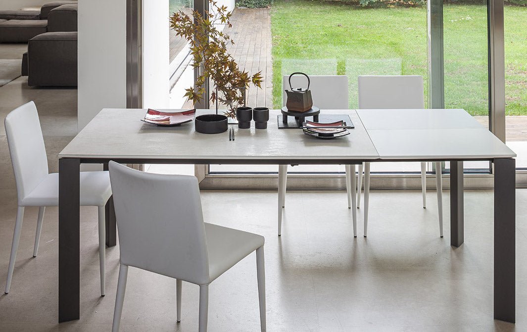 Flatiron extendable dining table is custom made in Italy for you. You can choose from the range of table top finishes for your beautiful dining area: