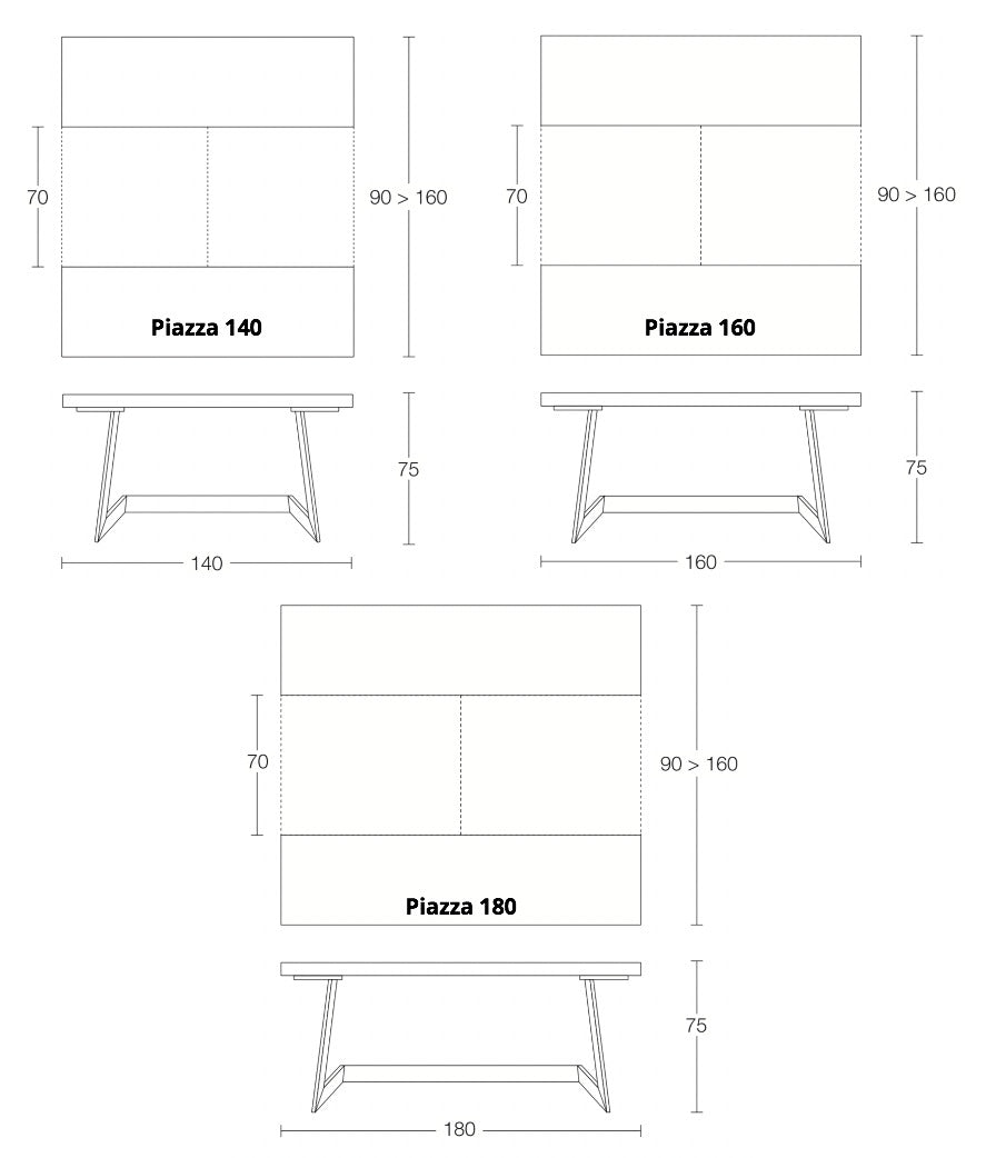 Piazza gracefully expands from a compact rectangular dining table to an impressive square table big enough to host 12 people. Like our other expanding dinner tables, the extensions can be folded and tucked away, reducing the width from 160cm to 90cm when not in use, hence saving space.