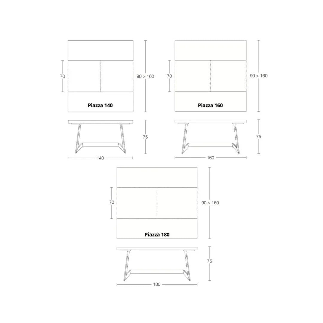 Piazza gracefully expands from a compact rectangular dining table to an impressive square table big enough to host 12 people. Like our other expanding dinner tables, the extensions can be folded and tucked away, reducing the width from 160cm to 90cm when not in use, hence saving space.