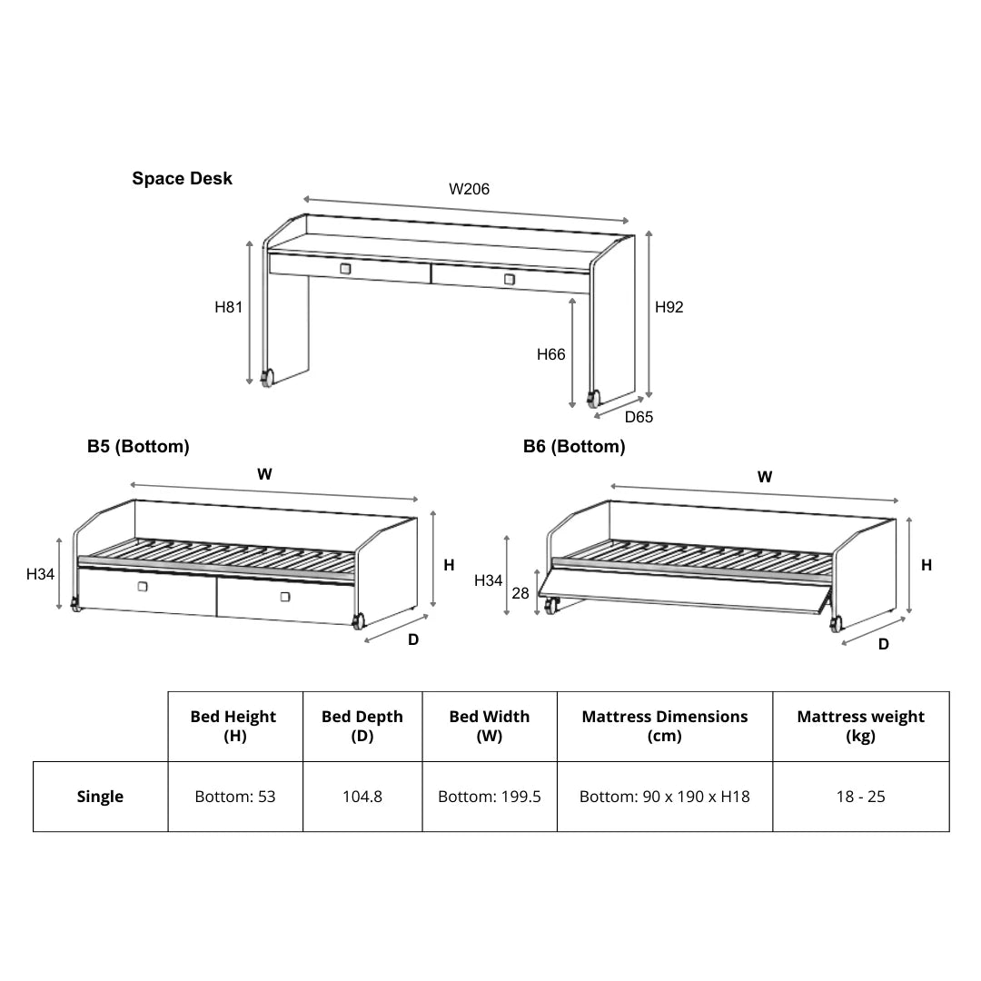 Sage - Single Kids/Teens Bed with Mobile Desk