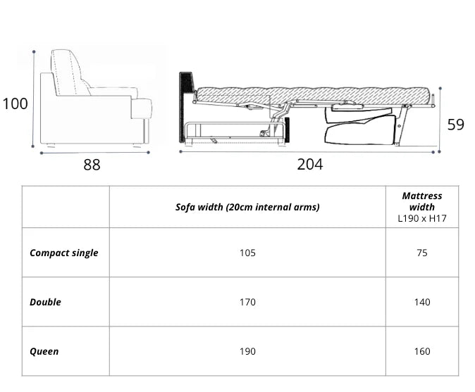 Slumbersofa Compact is available in three sizes – compact single, double or queen sized beds. Check out the full range of Spaceman's real mattress sofa beds if you'd like to explore more sizes.