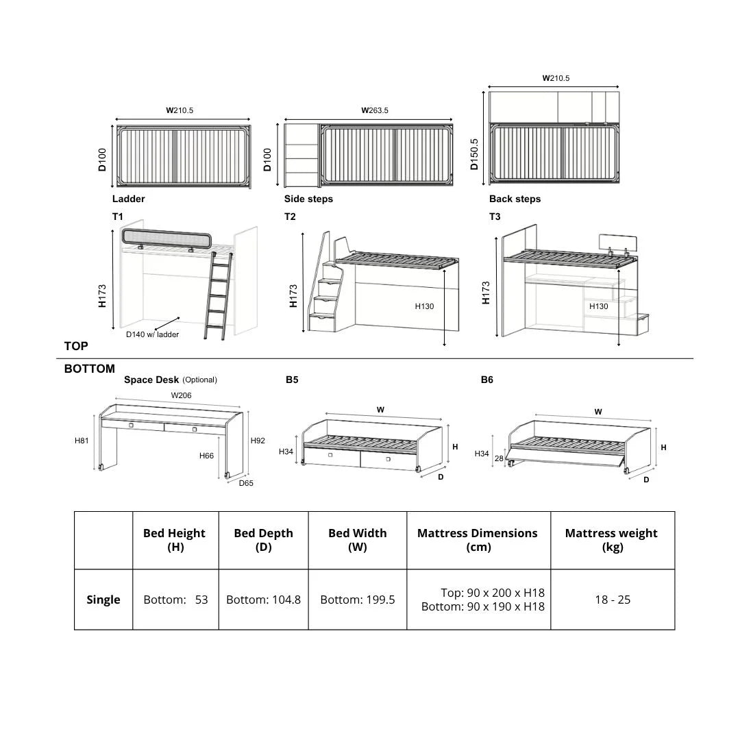 - Steps or ladders: Fret not your children do not need to climb high ladders as they do with conventional bunk beds, for safety we offer our high sleepers with steps which can be at the side or behind the bed.